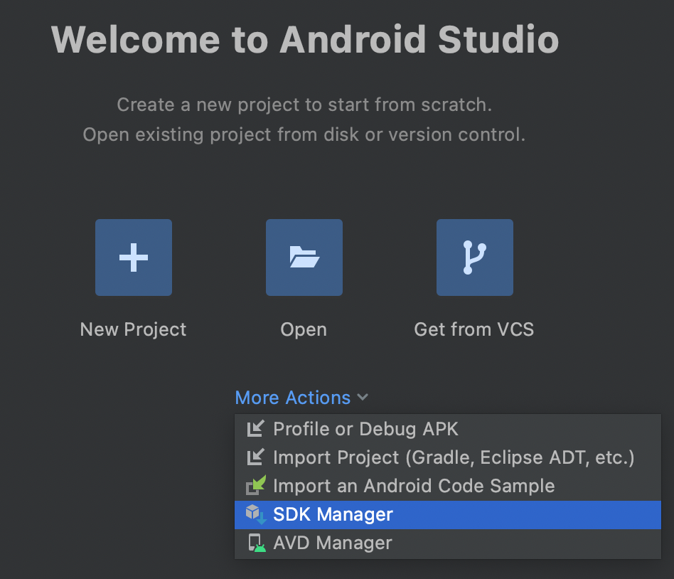 안드로이드 스튜디오 진입 페이지에서 [SDK Manager] 선택