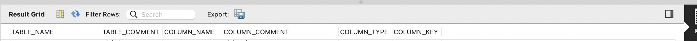 데이터베이스 컬럼과 코멘트를 같이 출력하고 싶다거나