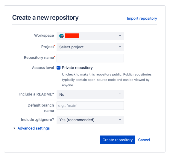 Create Repository를 클릭해서, 프로젝트 레퍼지토리를 생성하자