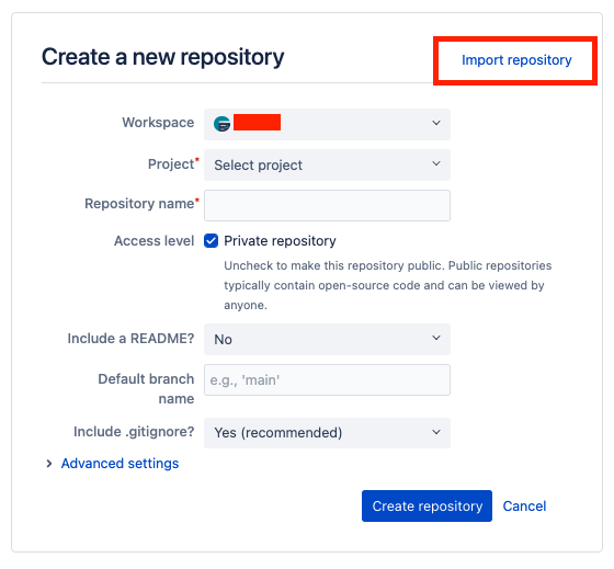 Import repository 클릭