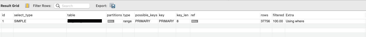 해당 문구가 조회되면, 커버링 인덱스가 사용되고 있다라고 봄
