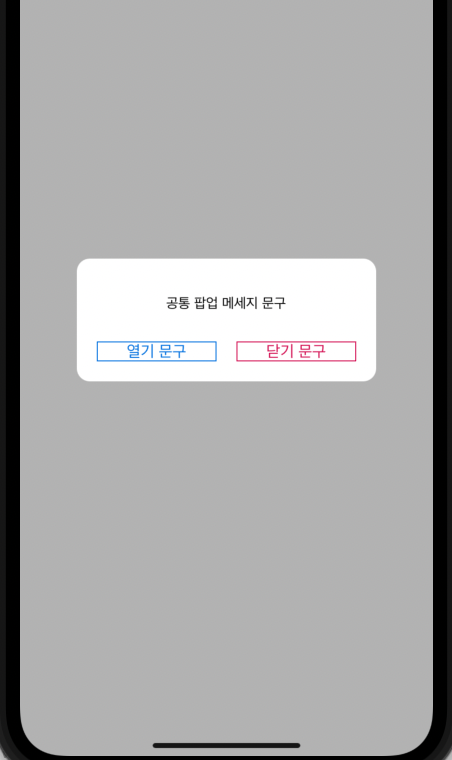 공통 팝업에는 버튼이 2개 존재하고, 버튼의 문구도 컴포넌트의 컨셉에 맞게 구성할 수 있도록