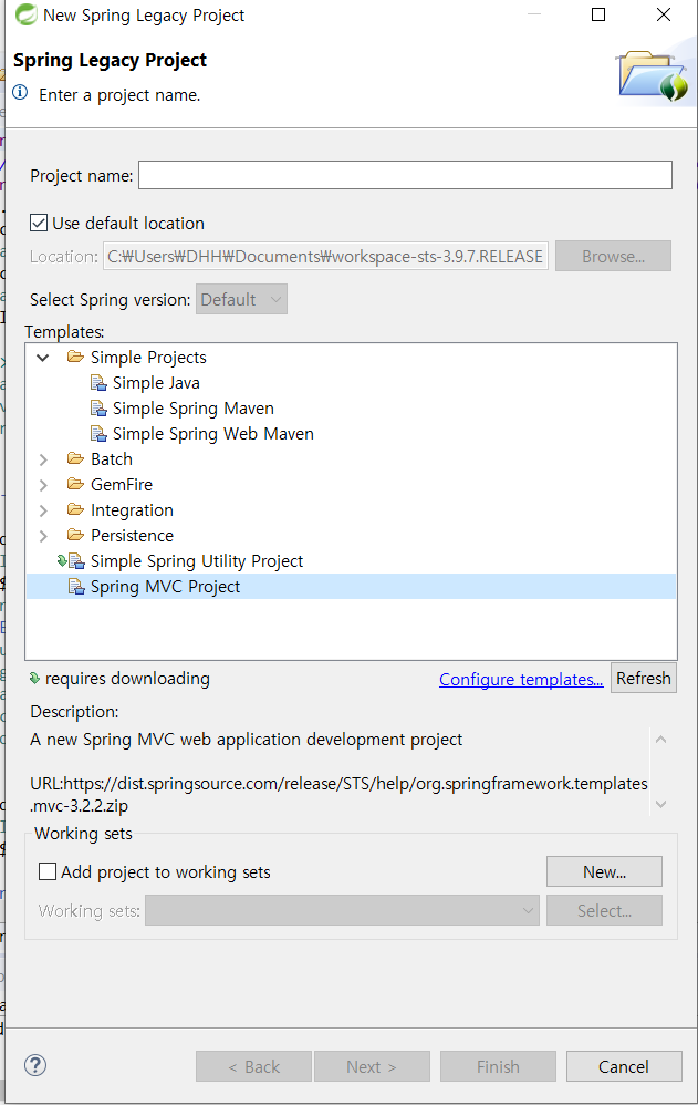 Spring MVC Project를 선택하고 Project name을 선택해준다