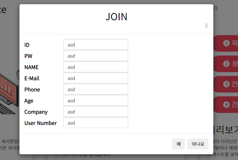 회원가입 페이지에서 [예] 버튼을 누르게 되면 case add : 구문으로 들어오게 되는데,