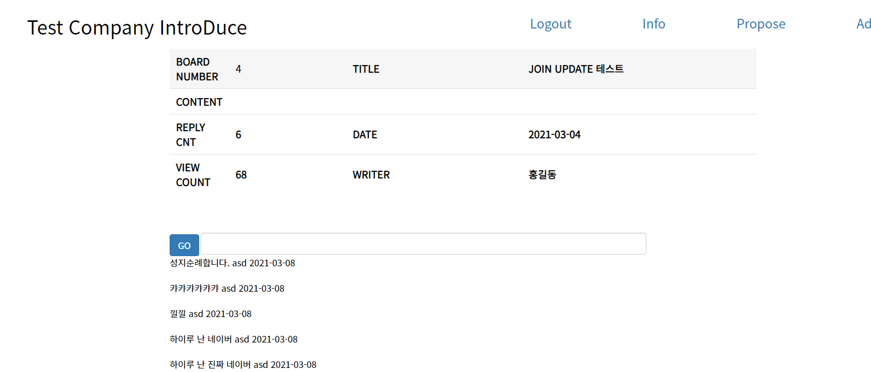 입력 창과 GO라는 버튼이 생성되어있다