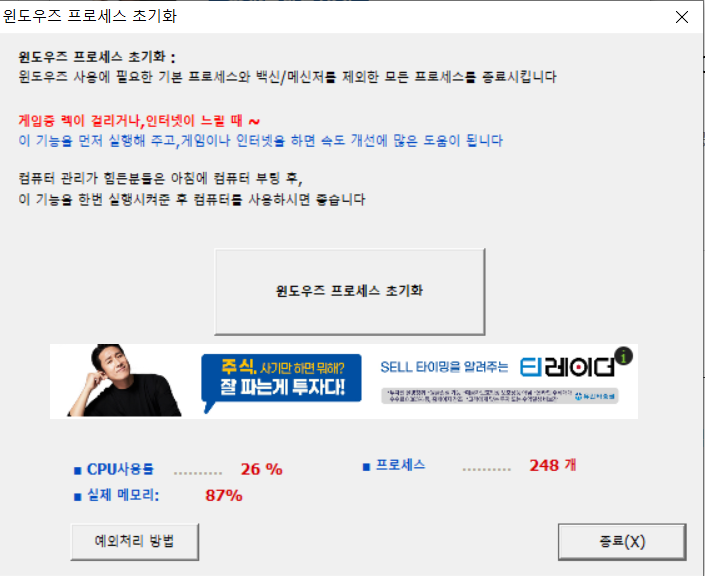 인터넷을 실행할 때, 속도에 문제가 될 수 있는 프로세스 실행 개 수를 강제적으로 삭제할 수 도 있다.