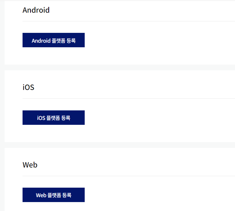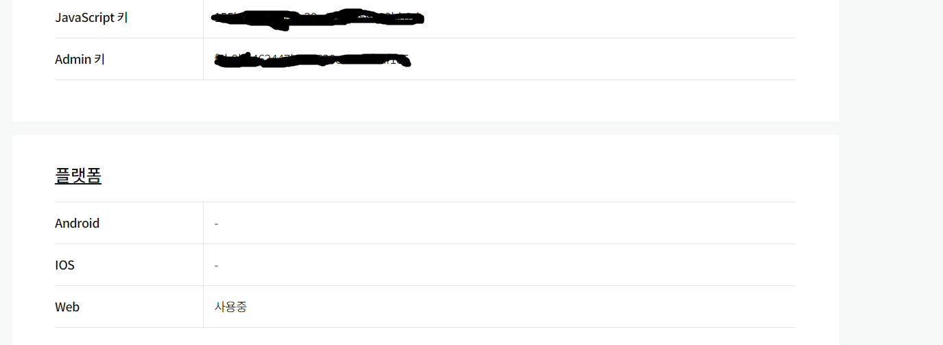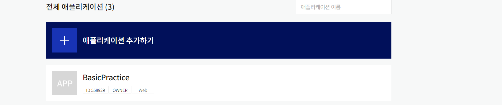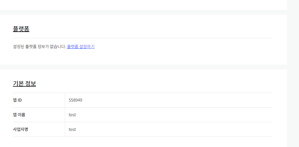 플랫폼을 입력하고 나면, 페이지에서 내가 생성한 애플리케이션 정보를 확인할 수 있다.