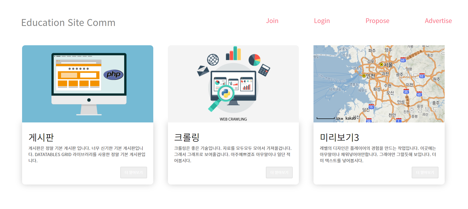 내가 구현한 메인 페이지 미리보기3번 img div에 지도를 넣을 예정이라서 해당 소스처럼 구현했다.