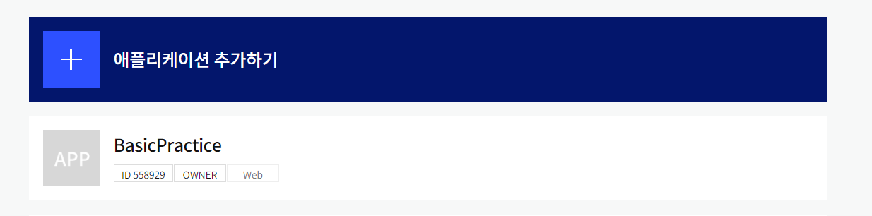 플랫폼을 입력하고 나면, 페이지에서 내가 생성한 애플리케이션 정보를 확인할 수 있다.
