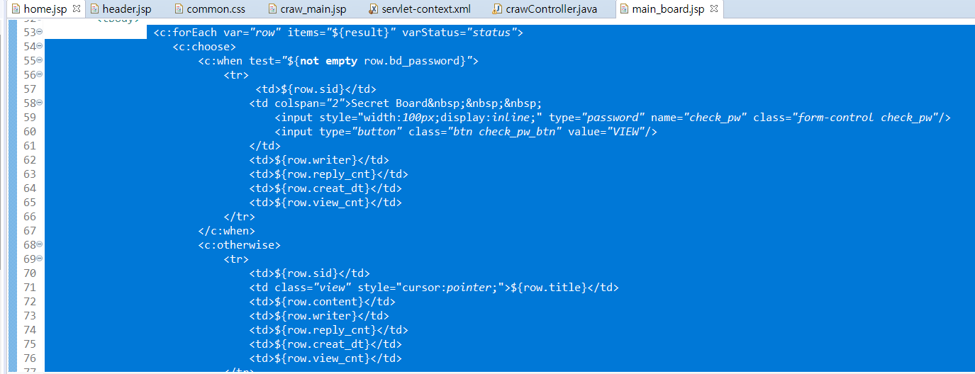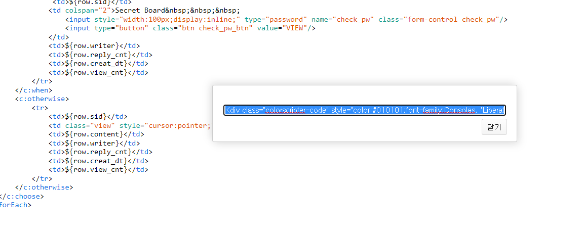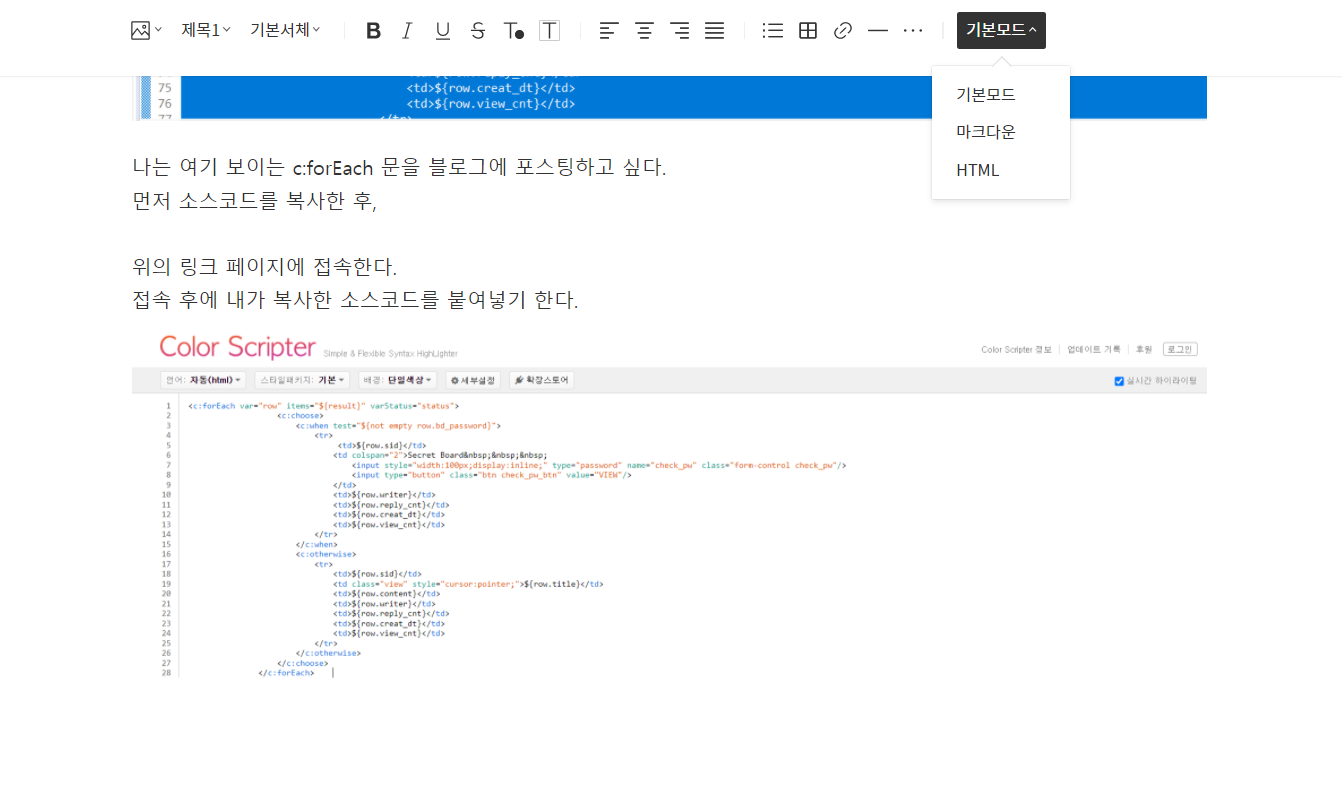 나는 여기 보이는 c:forEach 문을 블로그에 포스팅하고 싶다.