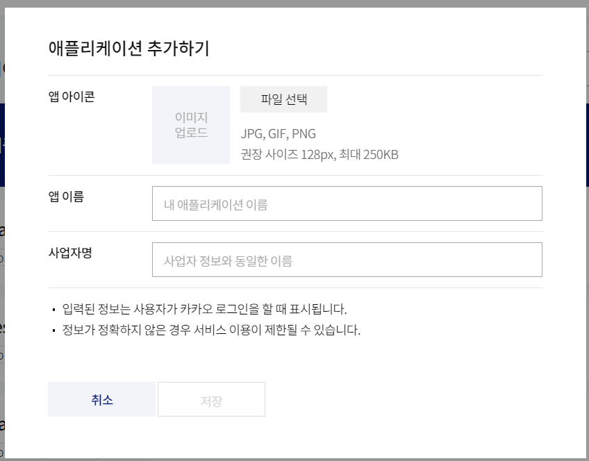 상단에 [내 애플리케이션] 에서 [앱 추가하기]를 눌러주면 아래와 같이 뜰 것이다.