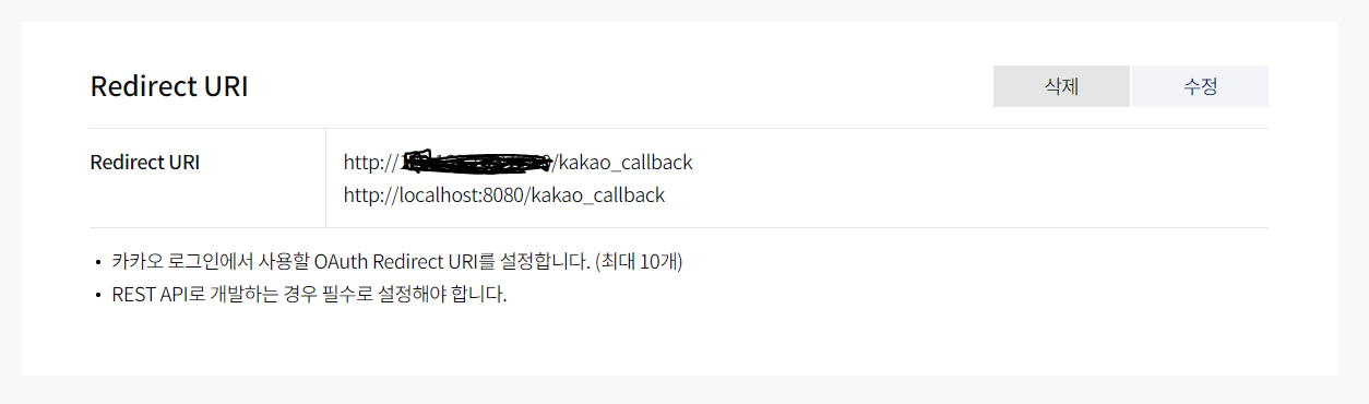 그 후, 하단의 탭에 Redirect URI 메뉴가 보일 것이다.