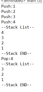 push(1) - push(2) - push(3) - push(4) 순으로 데이터를 삽입했는데 pop()으로 출력을 하니까 4라는 데이터 부터 나옵니당.