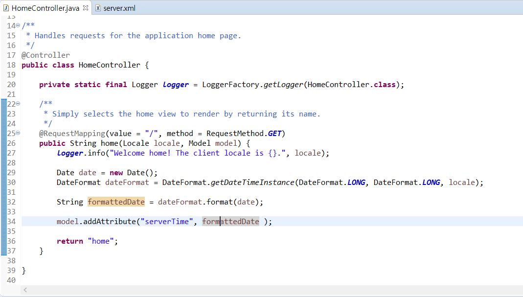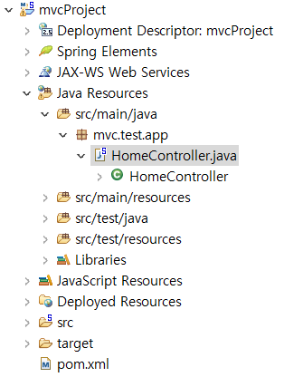 아래에 보면 내가 만든 패키지 안에, HomeController라고 프로젝트 내부에 컨트롤러가 하나 존재해있다.