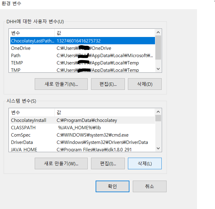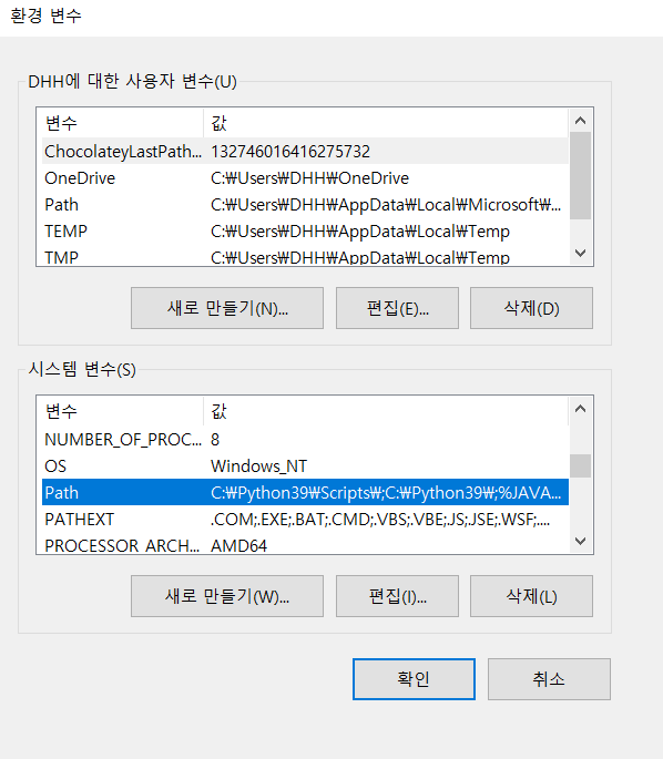 - 내가 다운받은 jdk 폴더 내부의 bin 폴더를 지정한 경로이다.