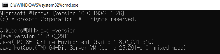 dos 창을 열어서 [java -version] 명령어를 쳐보자.