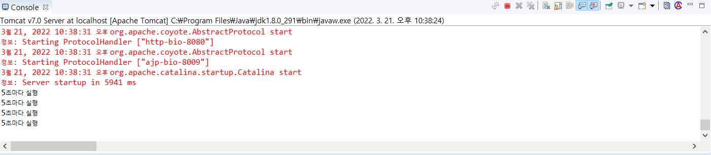 아래의 크론 표현식은 5초마다 스케쥴러가 진행되도록 설정해놓은 표현식이다
