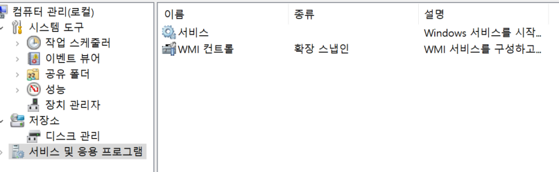 내 PC 오른쪽 마우스 클릭 -> 서비스 및 응용 프로그램 -> 서비스 클릭