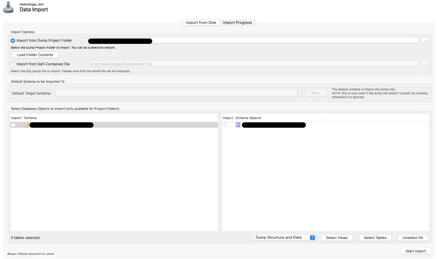 Import from Dump Project Folder