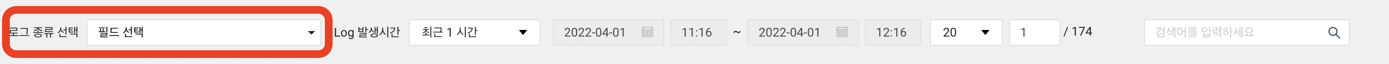 해당 페이지의 상단에 보면 로그를 조회하는 조회 조건들이 보인다